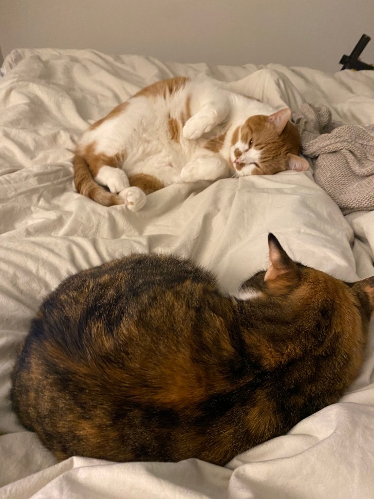 As a side note, there is a lot of background noise like rhythmic thumping, clattering, and meowing. For some reason, the cats decided that it was the perfect time for zoomies, playing with toys, and demanding to be fed early. Here they are looking so innocent and sweet, which they most definitely are not. I’m also still trying to figure out the best way to record. I keep trying different things, so bear with me until I get it right!